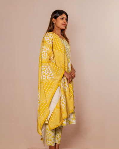 • Mustard Yellow with White Kurti set
