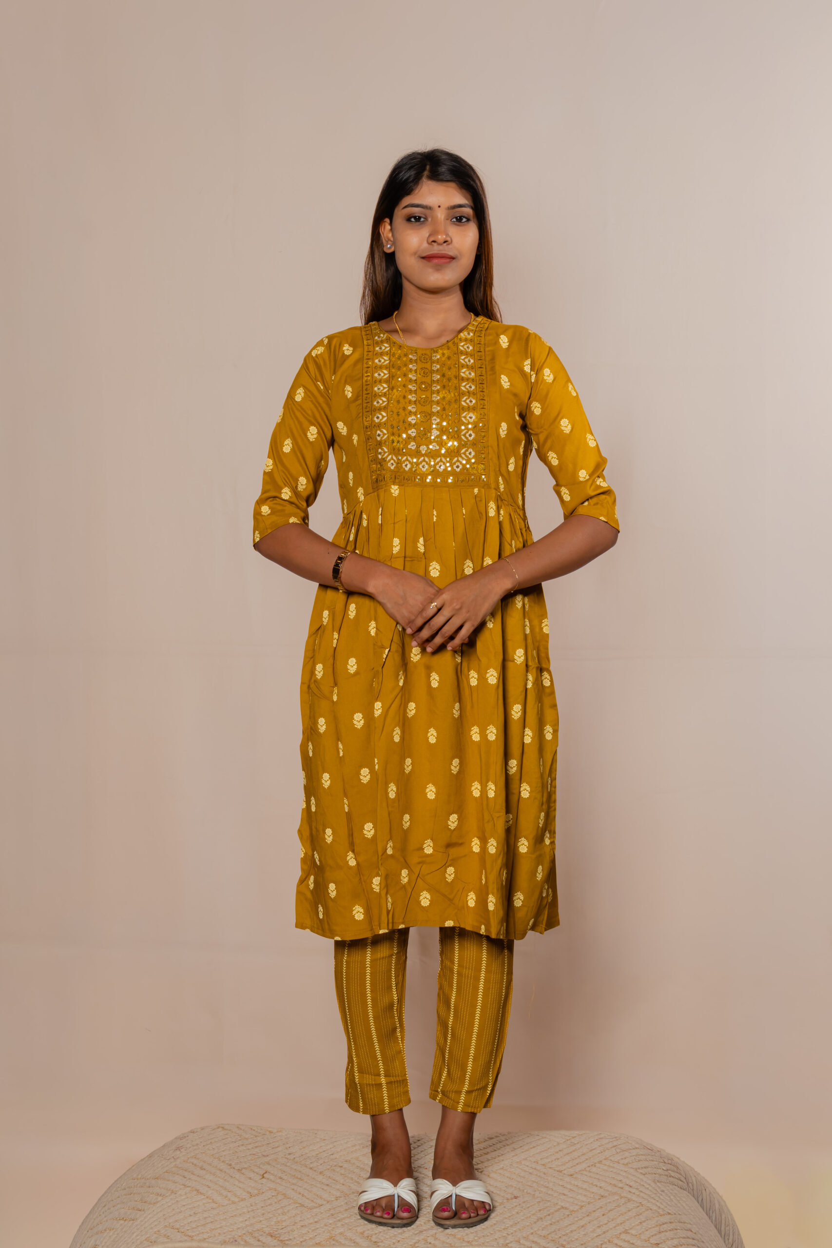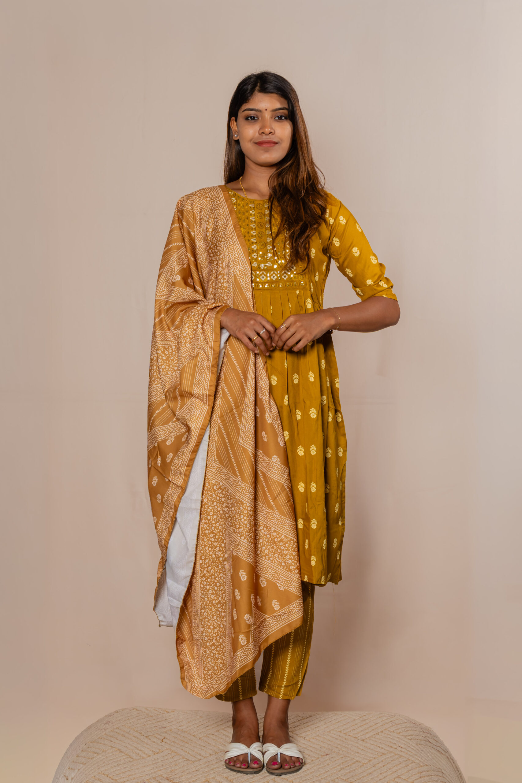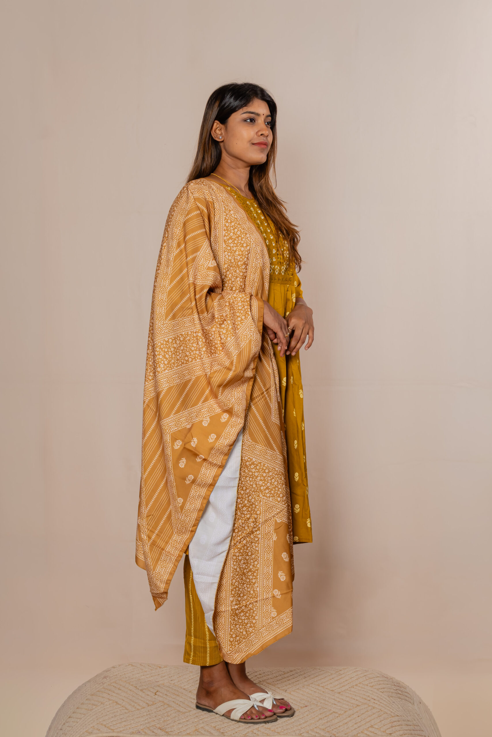 Step into effortless elegance with this refreshing mustard co-ord set, designed for comfort and style. Featuring a beautifully printed kurta paired with matching bottoms and a complementing dupatta, this outfit blends traditional charm with a modern touch. The soft fabric and breezy silhouette make it perfect for everyday wear, casual outings, or festive gatherings.